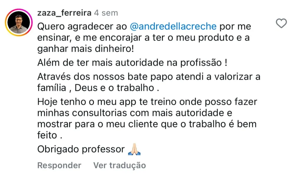 Atendo mensalmente mais de 120 alunos de consultoria, e 14 alunos de personal.